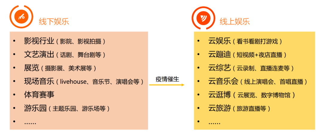 这种形态不是简单的将娱乐活动搬到线上,而是利用最新的前沿技术,注重线上和线下相结合,为线上娱乐提供丰富的体验。大众耳熟能详的是邀请朋友在线上共同云娱乐、云蹦迪、云综艺、云音乐会、云旅游等等。