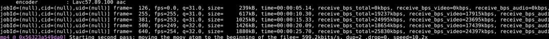 其中,转码计算执行占70%,也是执行速度无法保证的一个阶段,所以需要详细计算进度,转码执行流会定期输出 metric 日志,并进行监控计算,当前转码进度 = 已转码时长(time 字段)/ 需转码时长 。