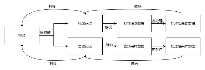 常见的视频转码流程,一般如下图所示: