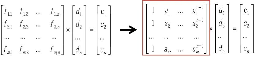 图2 利用范德蒙德(Vandermonde)矩阵计算冗余矩阵示意图