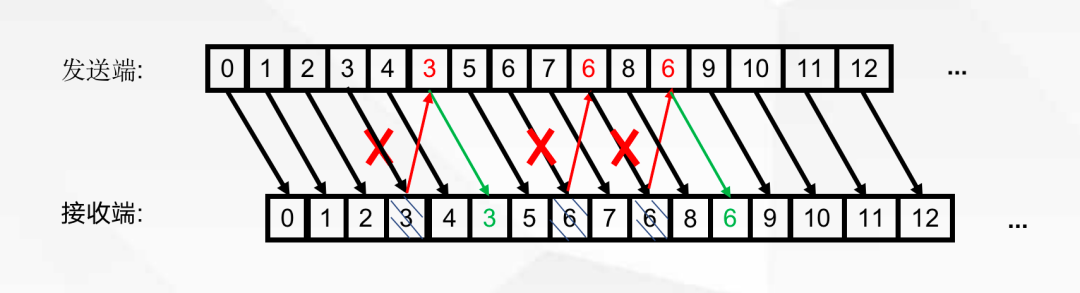 接收端通过 ARQ 请求,在数据缓冲队列的数据帧被播放之前,当还未重传成功的数据帧在已经达到播放时间时,接收端通过 ACK 通知取消请求重传,减少无用请求,参见(5)