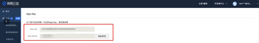如果已经是网易云信开发者,可以直接从网易云信的控制后台获取APP_KEY;