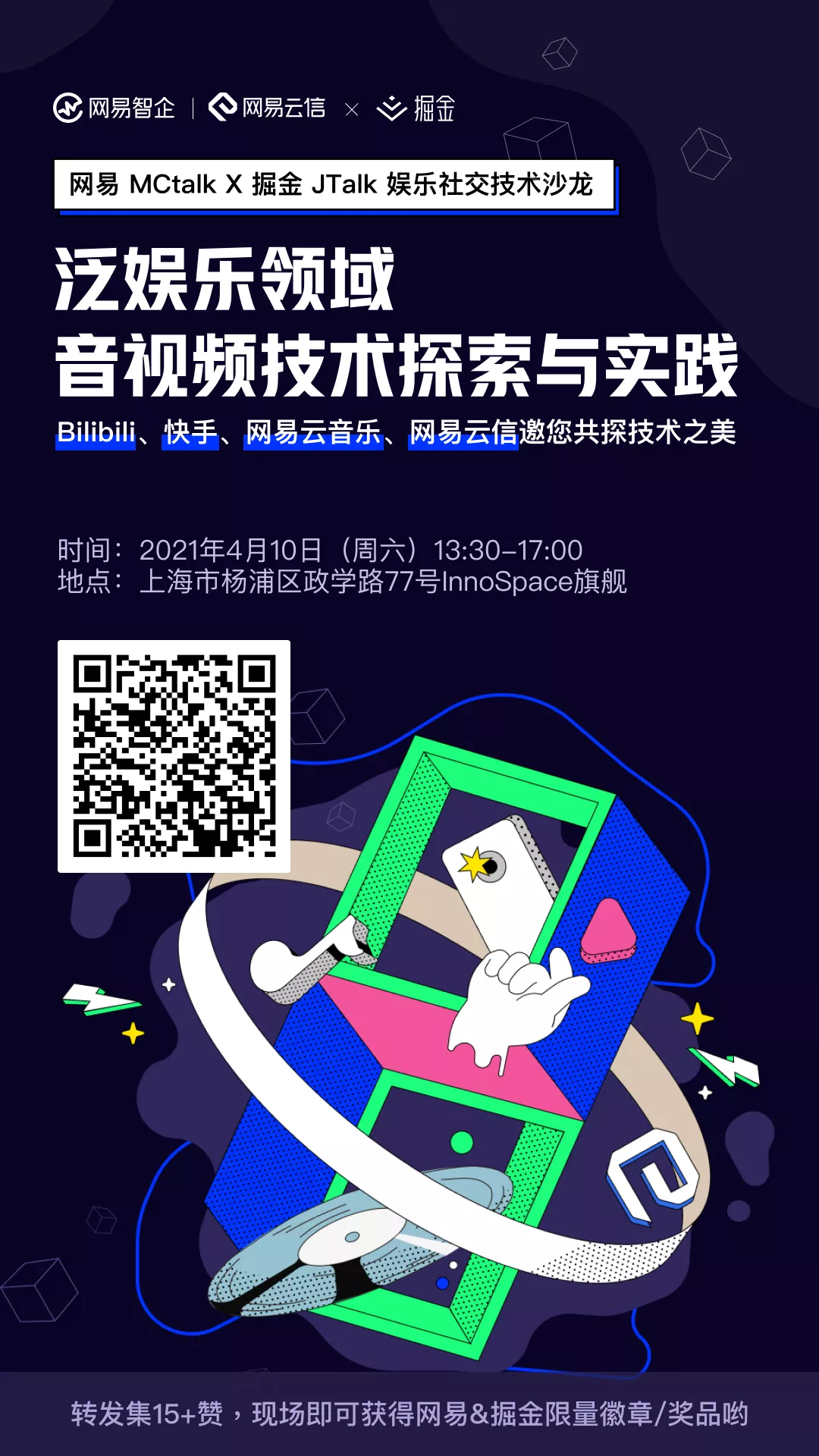 网易云信联合掘金,共邀B站、快手、网易云音乐等技术大咖探讨音视频技术实践,活动限时免费报名中!