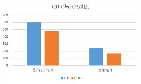上图是云信音视频业务 QUIC 和 TCP 的首屏打开耗时和登录流程耗时。可以看到首屏打开有20%的提升,登录有将近30%的提升,效果较明显。原因主要因为 QUIC 实现了0-1次 RTT 的握手流程,特别对于一些偏远省份,可以省下 100ms 的延迟,效果较为明显。