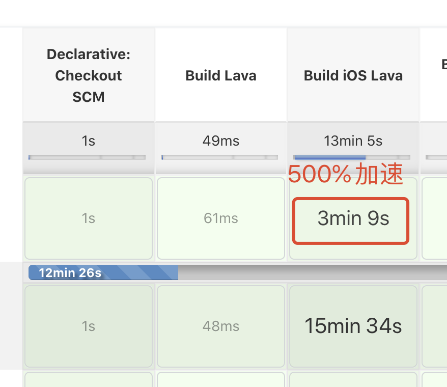下图是一个 Jenkins Job 不同硬件的前后对比,编译时间直接从 15 分钟提速到只需要 3 分钟!