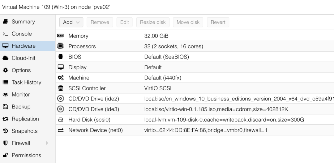 因为高效率的内存共享,平时 16GB 紧巴巴的机器,直接共享直至 256GB 的内存,完全无压力。CPU 也可以设置非常高的配置,让 Proxmox 动态分配直至最高性能。