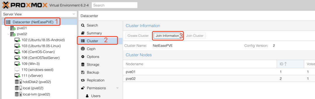 在所有的机器安装好了之后,先登录每台机器对应的管理界面,例如 https://192.168.1.141:8006,只需要找到一台作为主控制器,点击 Create Cluster,复制粘贴加入信息,到其他机器上粘贴,即可一键加入集群管理。至此,你就可以在任意一台管理界面上管理您的所有集群。
