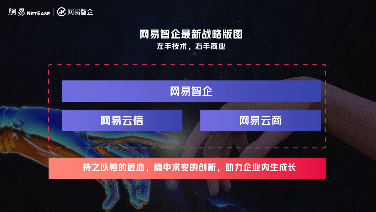 一边是通过深耕底层技术打造“全栈”式融合通信解决方案,一边是整合系列产品提供一体化商业解决方案,网易智企已完成全新的业务升级。