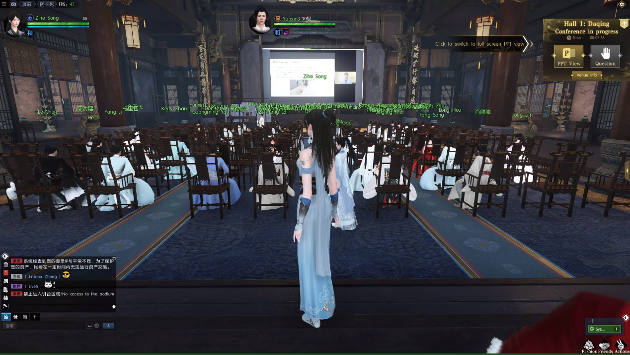 作为大会的主要承办方,网易伏羲实验室全球首创,为大会设计了一套沉浸式会议系统,在美轮美奂的古风场景中真实还原了线下学术会议的流程。网易云信,连同雷火、CC 直播等兄弟部门共同提供技术支持,为参会者创造了一次 “身临其境”的在线参会体验。
