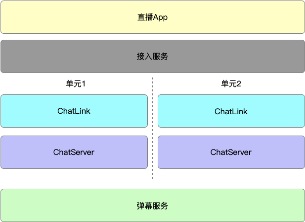 单个直播间的“接入服务”和“弹幕服务”因需要全局控制未采用单元化部署方案,但是在实施阶段采用了跨机房部署的方案(包括依赖的存储资源、服务),可以避免单个机房故障导致服务不可用的问题。
