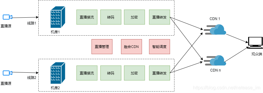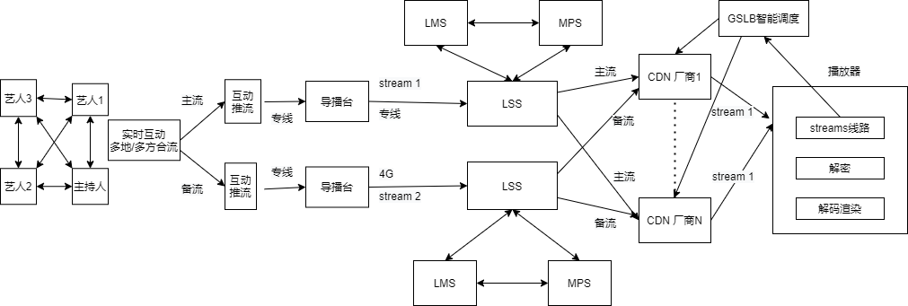 - 直播源站服务(LSS, Live Source Service),网易云信自建的直播流媒体服务器节点,结合全局智能调度系统,提供第一公里的最佳链路选择,同时融合支持接入多家CDN厂商。