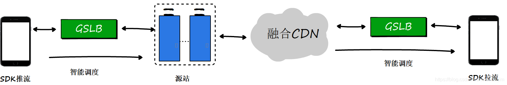 - 融合CDN与全局智能调度(GSLB, Golabal Server Load Balancing),提供敏捷智能的CDN调度策略和分配算法,结合全链路、端到端的流媒体控制,来达到最终端侧优良的用户体验。