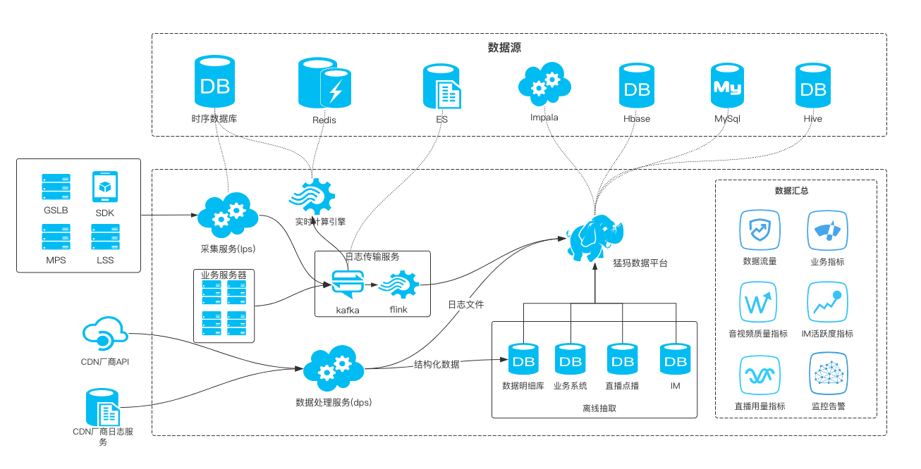 一场大型直播将会有大量的计算节点参与,除了媒体数据处理与分发的各个服务器节点,还有分布在国内外的海量客户端,我们对网络链路、服务节点、设备端的健康与质量感知,都离不开数据监控系统。同时,我们在现有系统无法自动fail-over的故障场景下,需要人工预案介入,而后者的决策判断,也强依赖于完善的全链路数据质量监控与报警系统。