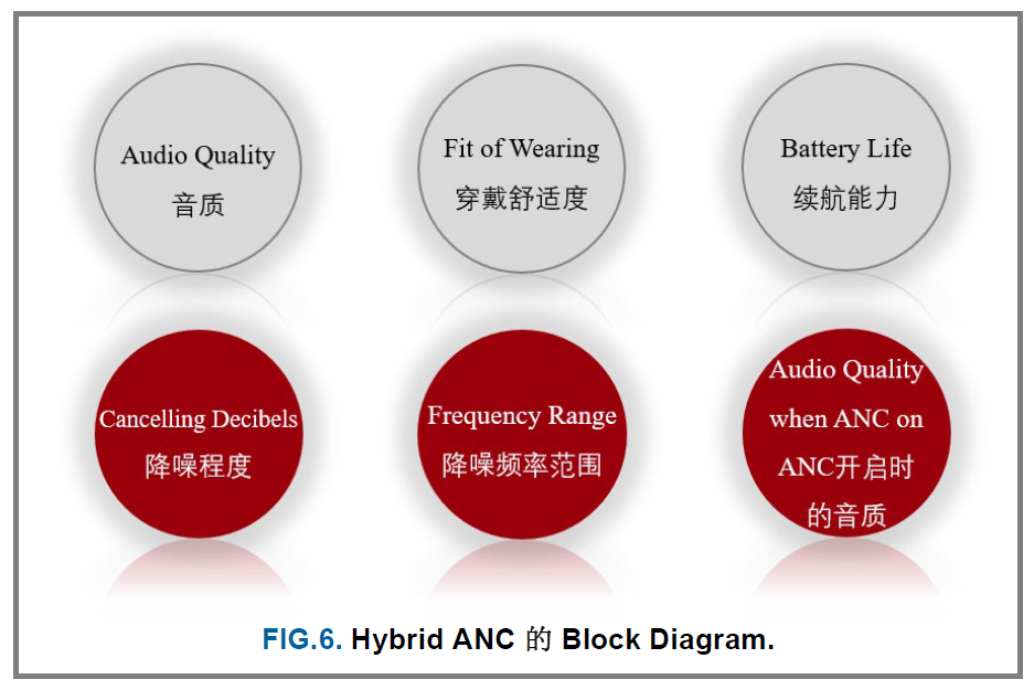 耳机的评测涉及很多方面,各种论坛也有详细的评测攻略。我们这里着重介绍一下怎样从专业的音频角度去评测ANC耳机。在Fig.6中,灰色的三个标准是比较常见的三个耳机评测标准。下面三个红色的标准则是从音频角度出发,对ANC耳机进行衡量。