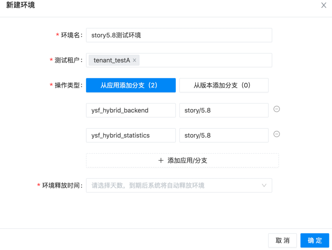 例如,在我们的SaaS系统七鱼里,我们使用租户id来作为我们的标识。在我们的平台创建测试环境时,除了指明要部署的应用外,我们还需要输入租户信息,通过这种方式完成请求和测试环境的映射。