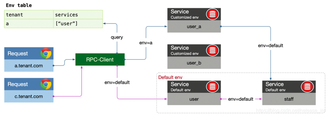 识别请求对应的环境信息,这意味着我们在创建测试环境时需要指明某种标识,且这种标识我们可以从请求中提取出,从而通过双方标识的匹配来完成关联,这种标识可以是用户账号、某组IP,或者企业租户,使用哪种方式不重要,重要的是结合业务特点达到方便易用的目的。