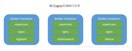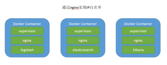 容器结构如下,与上一段内容相比加入nginx管理IP白名单,同样是使用supervior对进程进行管理。