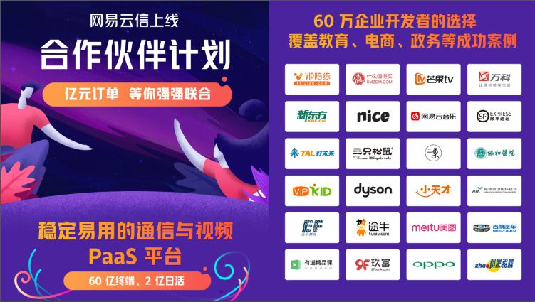 目前,网易云信已经和多个合作伙伴高效协作,帮助合作伙伴构建成功的业务实践。