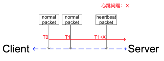 要想长连接一直有效,那么闲置时间就不能太长,所以在闲置时我们需要向外(Server)传输一些数据包,这也就是常说的“心跳包”,用于告诉运营商这个 IP 还在被使用,告诉Server 客户端还在线。