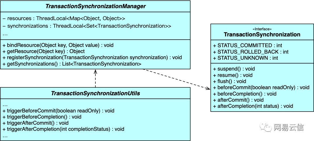 可以看到,获取当前事务对象时,使用了 TransactionSynchronizationManager#getResource方法,类图如下: