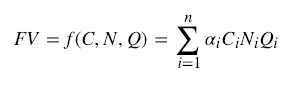 FV=f(C,N,Q),FV就是function value, 功能价值的意思,这里有变量C,N,Q。 C就是一个功能被使用的次数,如果用户使用的次数越多,它为用户解决的需求就越多,这个功能的价值就越高。N就是成功使用这个功能的用户数,100位客户使用这个功能和10000个用户使用这个功能,产生的价值是不同的。还有要考虑用户质量的不同,这就是Q,精准用户、免费用户、个人用户使用这个功能,产生的价值是不一样的。前者可能一年可以花十万来用这个功能,个人用户可能都不会续费。这里还有一个标准化的参数,用户群体的编号和用户群体的数量,这其实是比较简单的一个道理。