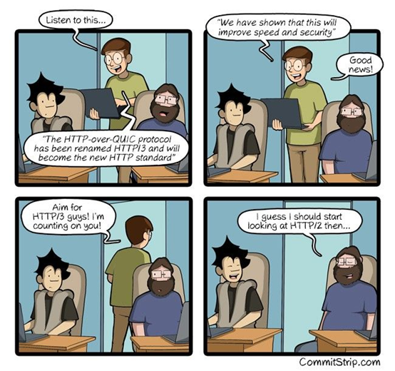 互联网工程任务组(IETF)官员透露,HTTP-over-QUIC实验协议将重命名为HTTP / 3,并有望成为HTTP协议的第三个正式版本。这是由Mark Nottingham的这一原始建议引发的。