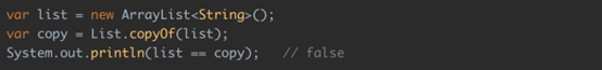 List,Set和Map等集合已经用新方法扩展。 List.of从给定的参数创建了一个新的不可变列表。 List.copyOf创建列表的不可变副本。