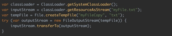 InputStream增加了transferTo方法,可以用来将数据直接传输到 OutputStream: