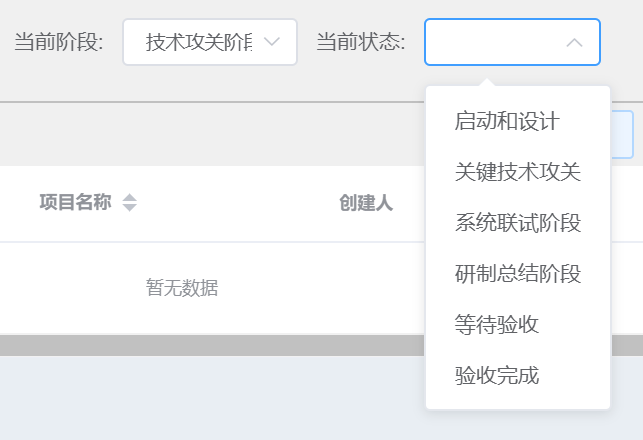 需要做两个选择器的级联操作,根据当前阶段显示不同的当前状态,我的第一思路是用到VUE的计算属性computed