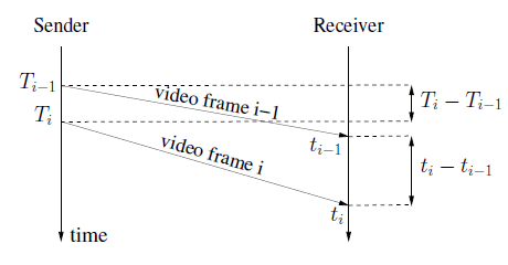 前面多次提到WebRTC使用延迟梯度来判断网络拥塞状况,那什么是延迟梯度,为什么延迟梯度可以作为判断网络拥塞的依据,我们在这里详细介绍,首先来看以下,延迟梯度是怎样计算出来的: