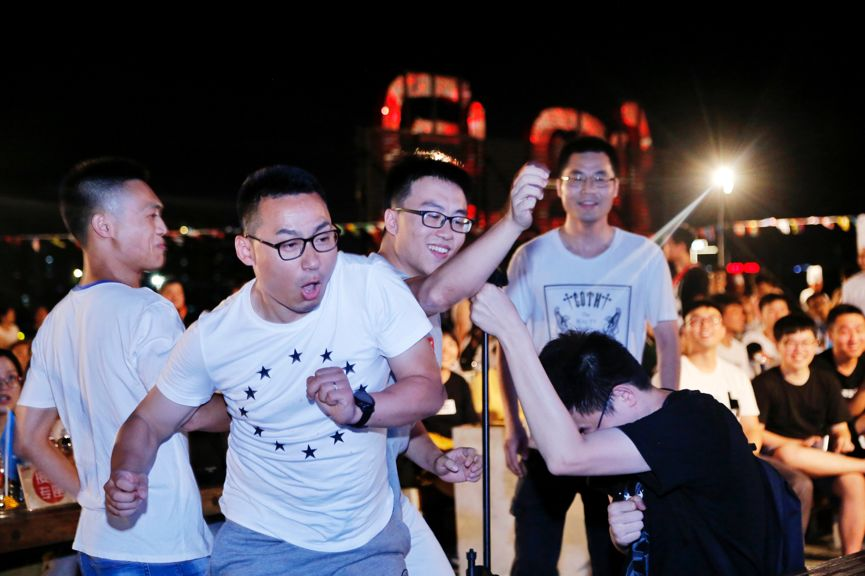 全场两百位程序员分成四组,派出代表两两进行答题PK,这是一场为了50杯鸡尾酒而进行的荣誉之战!每组的代表们都拼尽全力!看看我们工作人员小哥哥,用生命在保护话筒。
