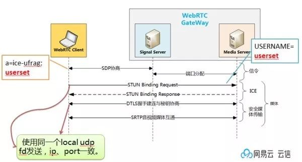 2)发送STUN Binding Request的客户端本地udp fd,与ice建连成功后发送媒体数据的udp fd是同一个,也就是说Server上看到的ip port是同一个。