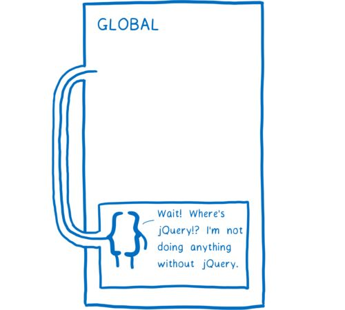 你可能还记得 jQuery 时代的这种情况。在加载任何 jQuery 插件之前,你必须确保 jQuery 在全局作用域中。