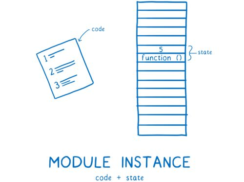 所以模块实例将代码(指令列表)和状态(所有变量的值)组合在一起。