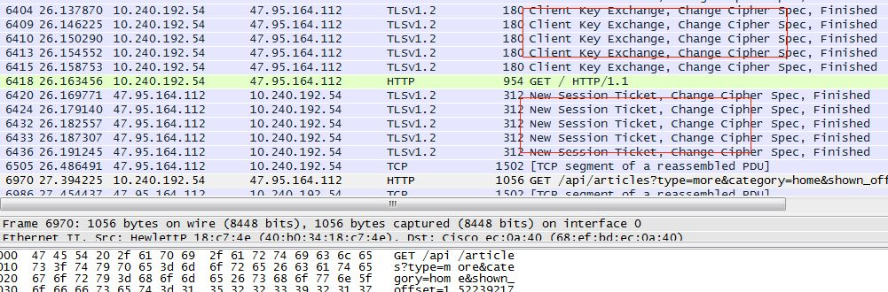除此之外,上面还有很多TLSv1.2的东东,比如:client_key_exchange、Session Ticket,这是最初提到过的TLS握手过程的第四步和第五步,并不是请求数据包的内容,因此看到其中像是没有解密的内容也不要奇怪哦。