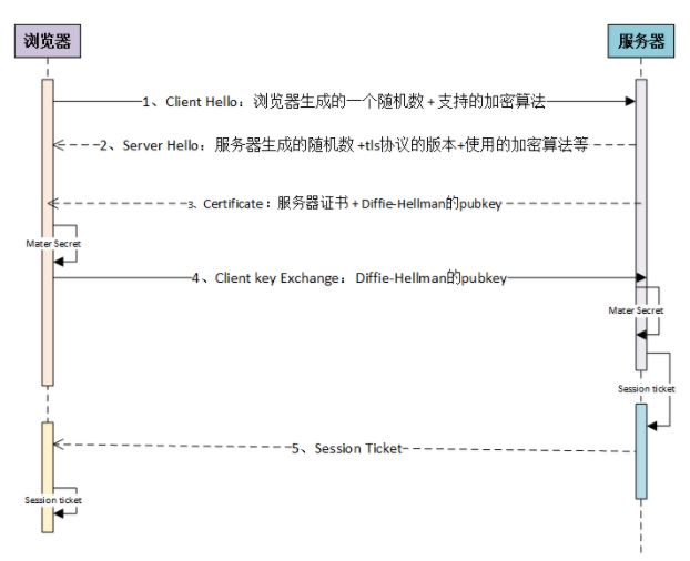 第一步,浏览器给出协议版本号、一个客户端生成的随机数,以及客户端支持的加密方法。