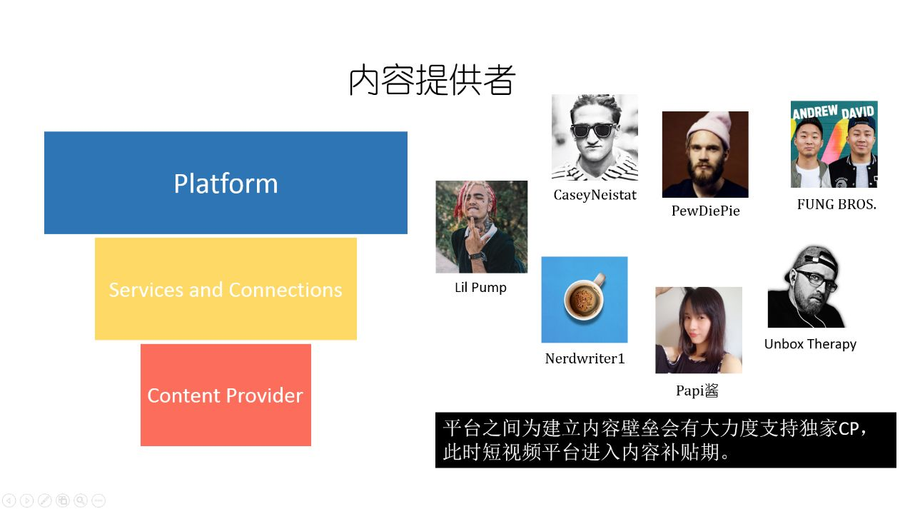 短视频平台有三个主要方面:平台、连接和服务、内容提供者。