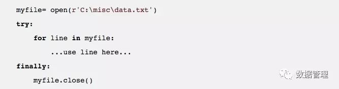 我们以处理文件为例来看一下在其他语言中,是如何处理这种情况的。 Java风格/C++风格的Python代码: