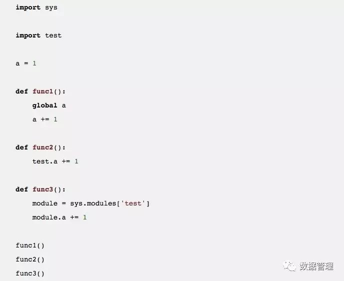 这段代码虽然看起来都是在对全局变量操作,其实,还涉及到命名空间和模块的工作原理,如果不能很清楚的知道发生了什么,可能需要补充一下自己的知识了。