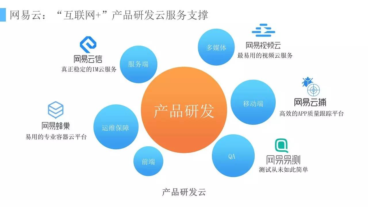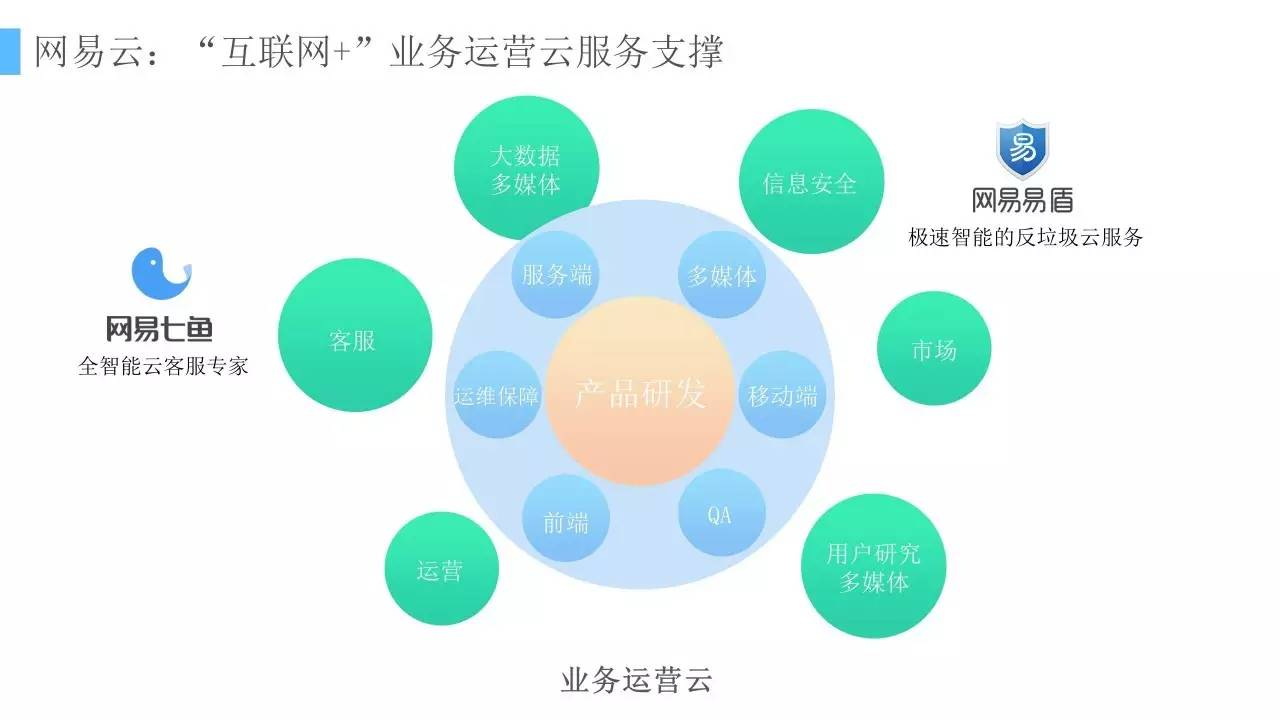 网易云基于自身多年来对不同互联网业务研发和运营的经验,发现互联网+的业务在宏观层面可以划分为三件大事:研发部门来研发出好的产品;运营部门运营好业务;管理部门管理好企业。于是,网易云从“互联网+”产业客户的实际需求出发,聚焦为客户提供产品研发、业务运营及管理运作三个层次的核心解决方案。