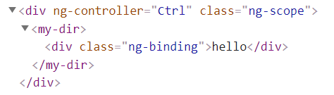 .directive('myDir', function() {return {restrict: 'E',replace: false,template: '{{title}}'};