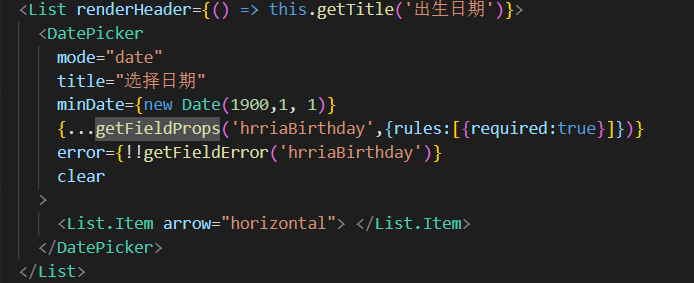 import { createForm, formShape } from 'rc-form';class Form extends React.Component {static propTypes = {form: formShape,};submit = () => {this.props.form.validateFields((error, value) => {console.log(error, value);});}render() {let errors;const { getFieldProps, getFieldError } = this.props.form;return ({(errors = getFieldError('required')) ? errors.join(',') : null});}