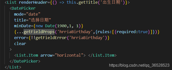 createForm()(Form)使得组件Form的props上挂载了一个form对象,并且这个this.props.form对象有getFieldProps、getFieldError和validateFields三个方法 -