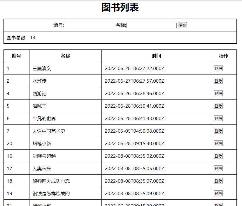 编号 名称 时间 操作 {{item.bid}} {{item.name}} {{item.addtime}}