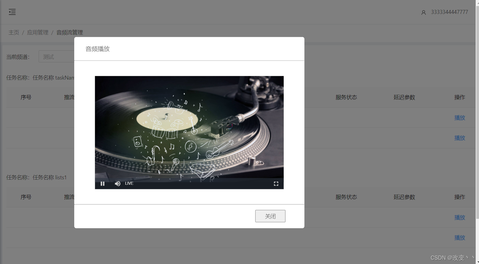 methods: {// 播放play () {// 打开弹层this.show = true// 准备video容器this.$refs.myBox.innerHTML = ''// 点击时调用子组件内的方法,初始化video.jsthis.$refs.audio.getVideo()// 调用方法获取流地址this.$refs.audio.getUrl()}