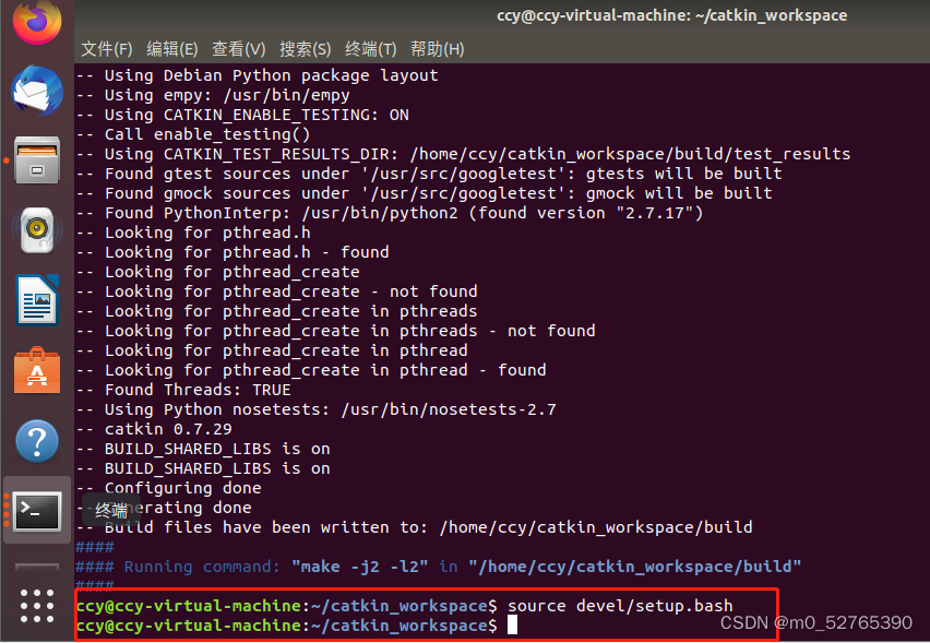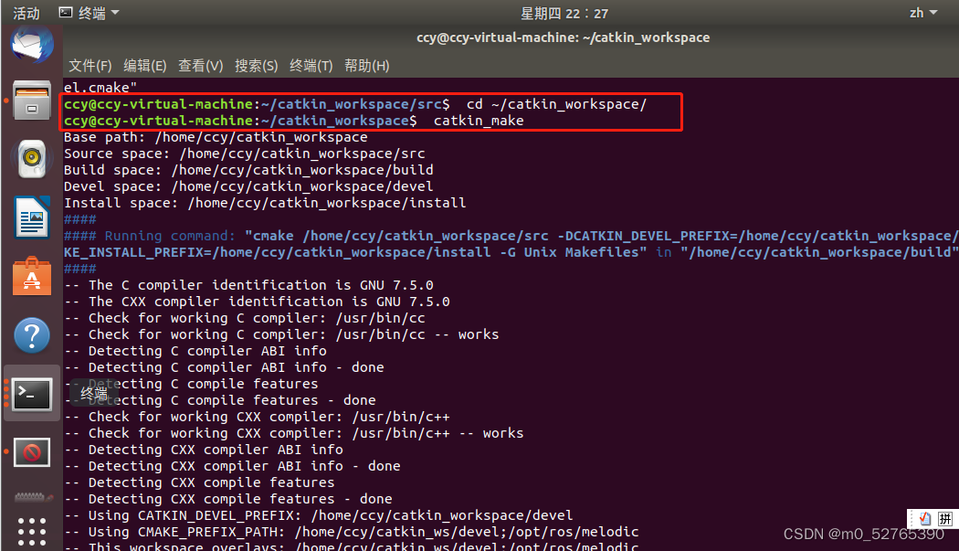 运行后在catkin_workspace--->src中会产生CMakeLists.txt文件,结果如下: