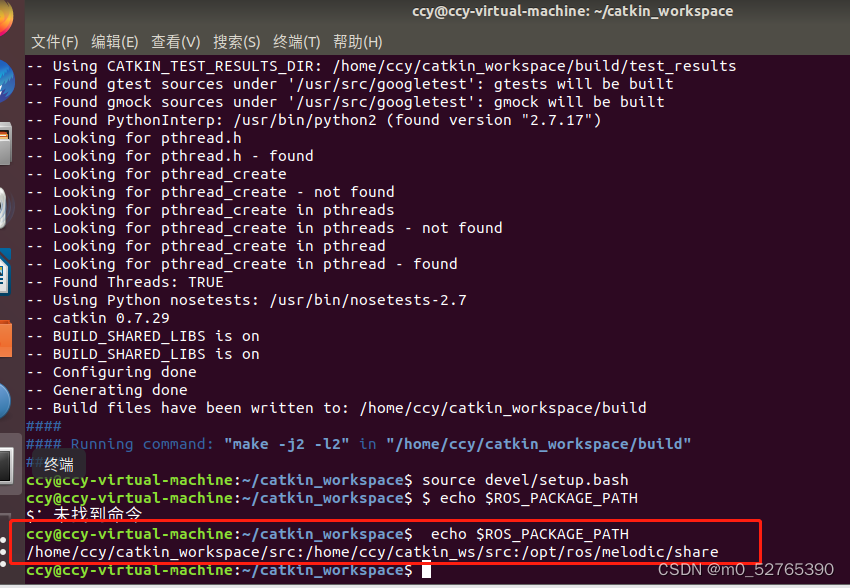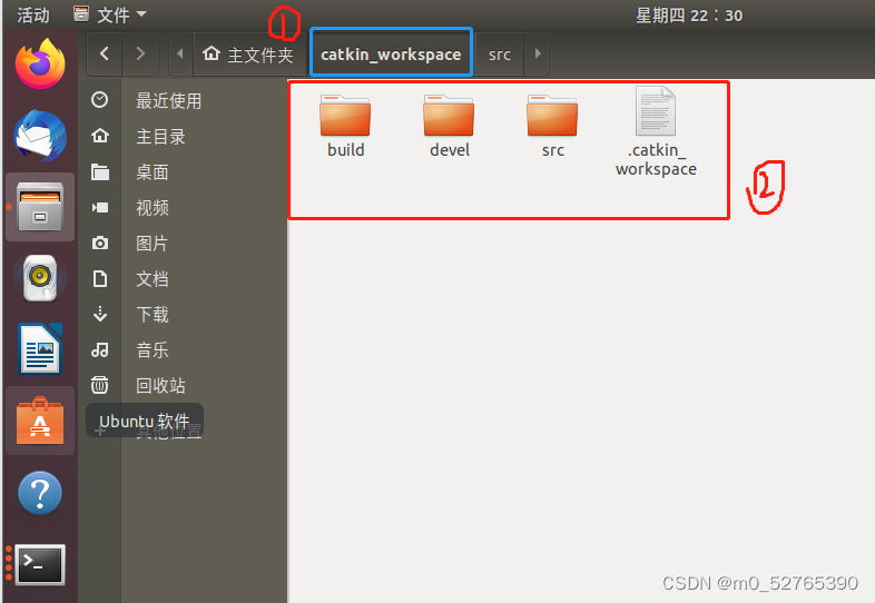 在工作区间catkin_workspace中会产生build、devel文件夹和 .catkin_workspace文件,如下图所示: