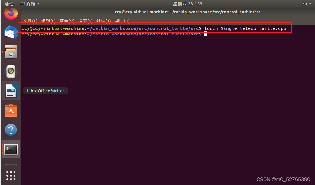 之后,在control_turtle--->src下创建Single_teleop_turtle.cpp / Double_teleop_turtle.cpp,命令为: