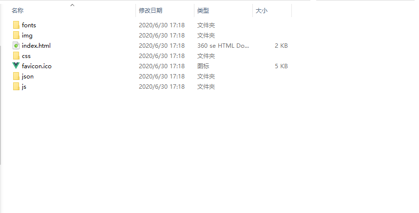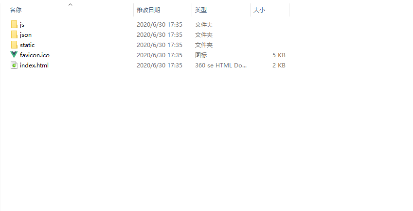 说明:文件夹下的 js 和 json 文件夹是我写在 public 文件夹下的模块用于 axios 请求本地数据,打包时会直接打包到 dist 文件夹下。