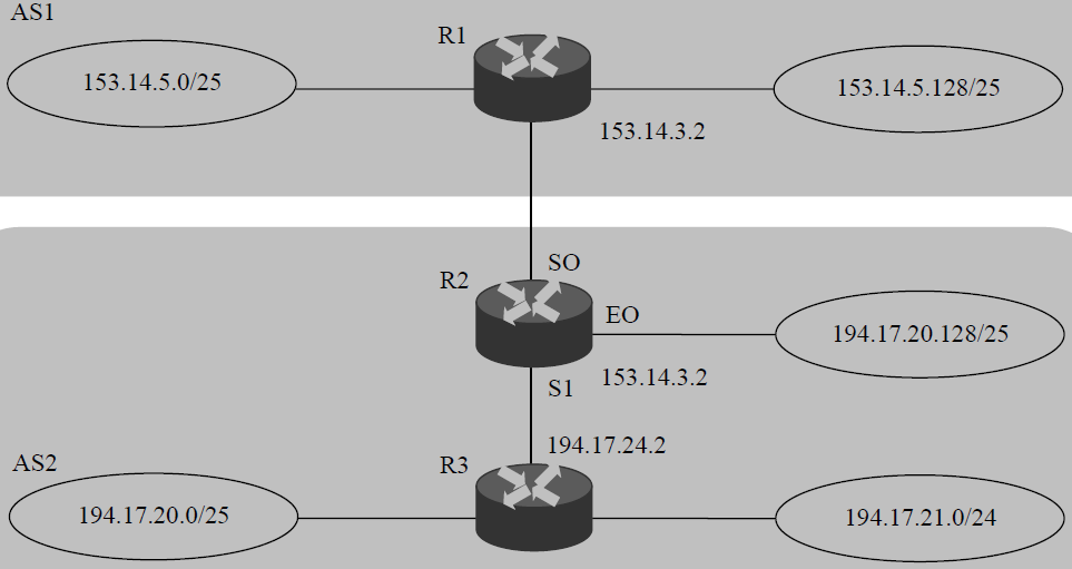 将AS2中的R3上的两个子网进行路由聚合得到 194.17.2.0/23